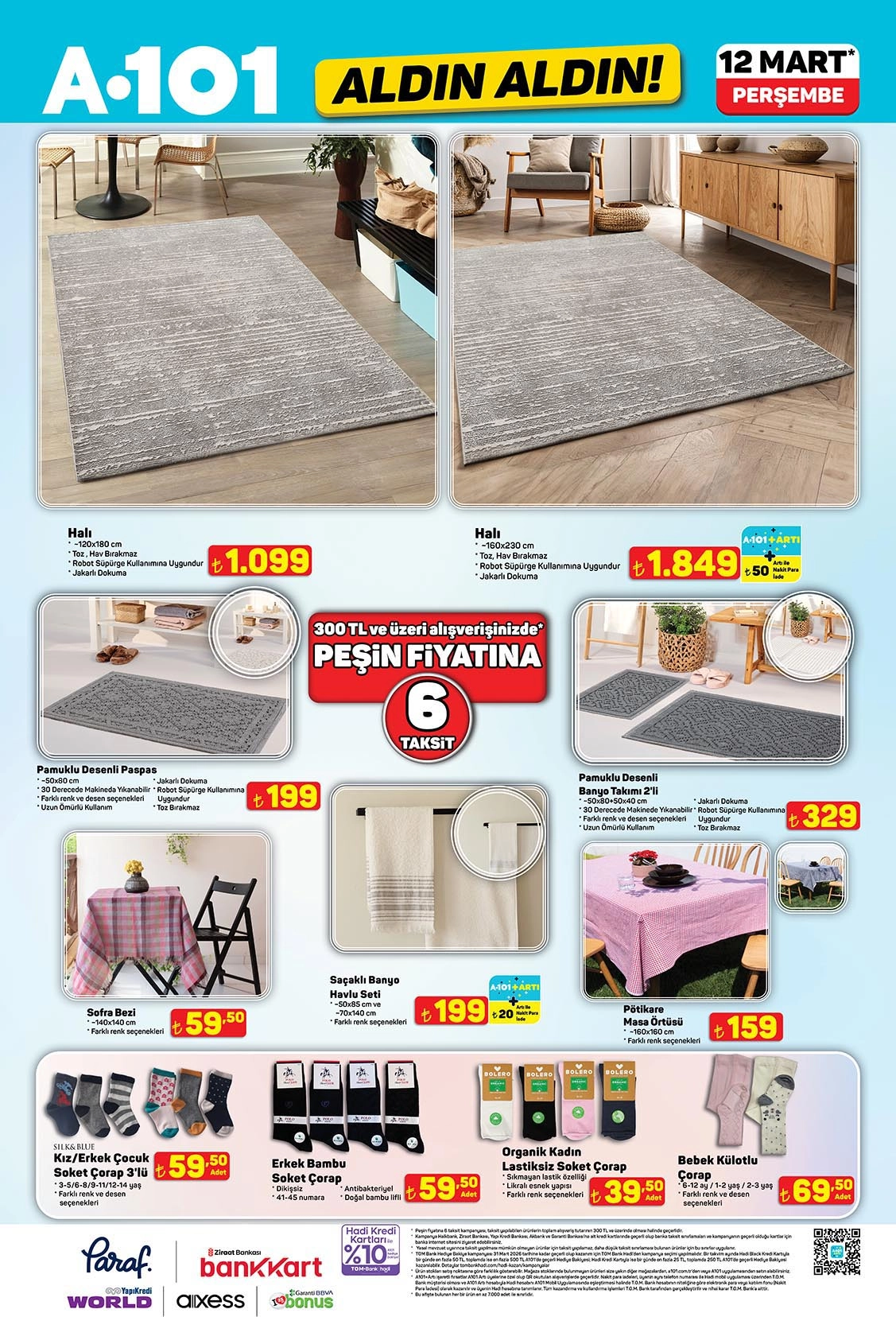 Türkiye’nin en büyük market zincirlerinden biri olan A101, 12 Mart 2026 Perşembe günü geçerli olacak yeni “Aldın Aldın” kataloğu ile yine ezber bozuyor. A101 12 Mart 2026 kataloğu Teknolojiden mutfak gereçlerine, elektrikli ulaşım araçlarından temel gıdaya kadar binlerce üründe sunulan avantajlı fiyatları sizler için sayfa sayfa inceledik. İşte bu haftanın öne çıkan aktüel ürünleri ve detaylı özellikleri: