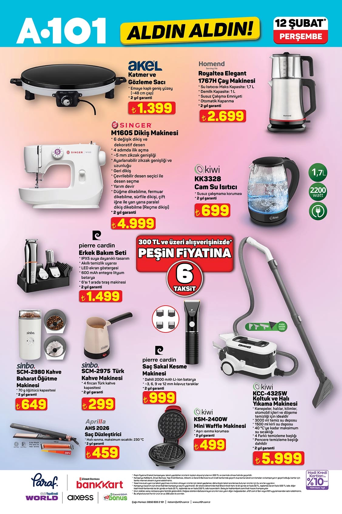 A101 marketleri, 12 Şubat Perşembe günü geçerli Aldın Aldın kataloğu ile teknoloji, beyaz eşya, küçük ev aletleri, ev tekstili, oyuncak ve daha birçok kategoride dikkat çekici ürünleri tüketicilerle buluşturuyor. Bu haftaki A101 12 Şubat 2026 katalog özellikle televizyon, elektrikli bisiklet, beyaz eşya ve ev mobilyaları gibi yüksek ilgi gören ürünlerle öne çıkıyor.