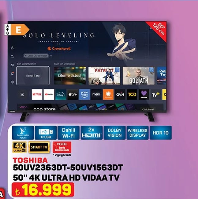 Toshiba 50” 4K Vidaa TV Satış Fiyatı: 16.999 TL