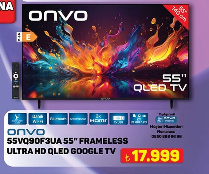 Onvo 55” QLED Google TV Satış Fiyatı: 17.999 TL