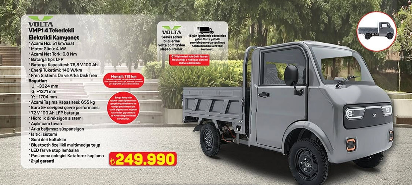 Volta VMP14 Tekerlekli Elektrikli Kamyonet Özellikleri ve Fiyatı