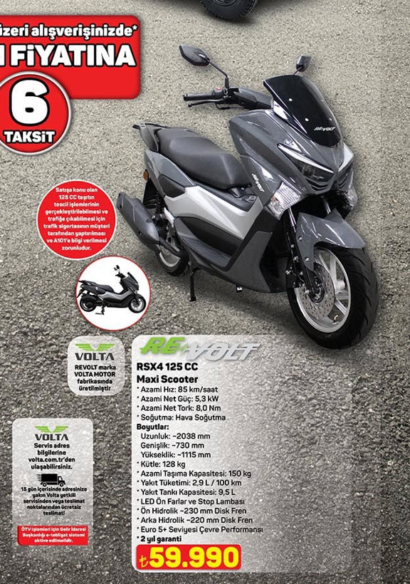 - Revolt RSX4 125 CC maxi scooter → 59.990 TL