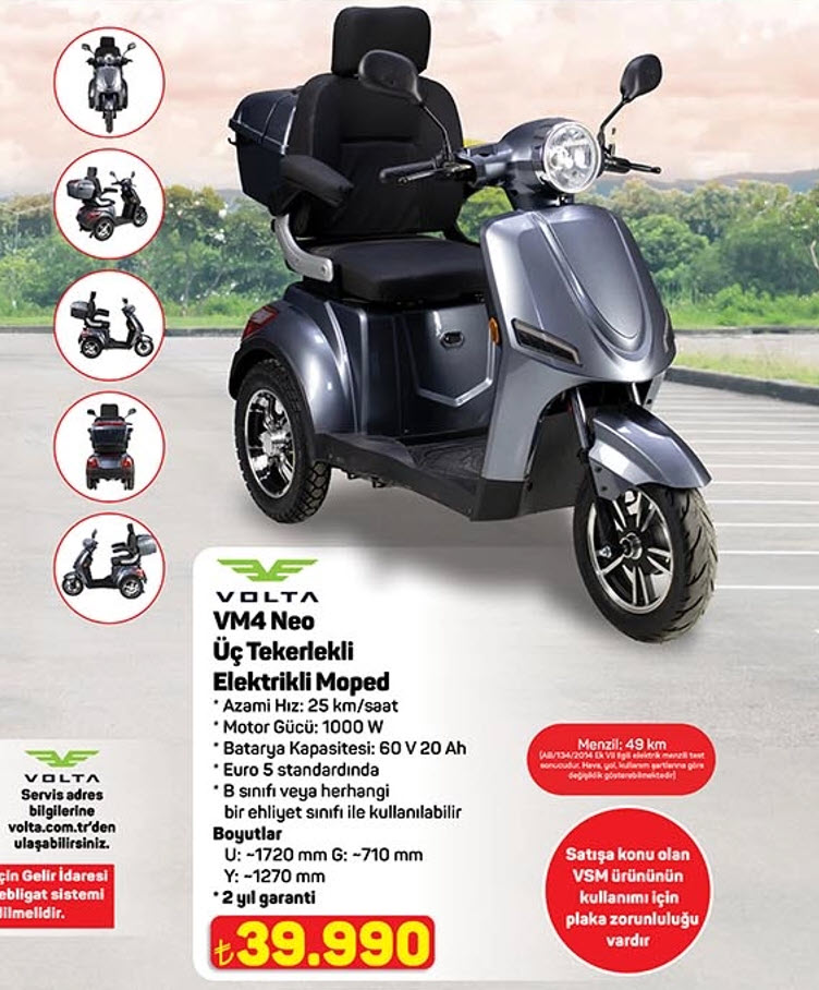 • Volta VM4 Neo Üç Tekerlekli Elektrikli Moped – 39.990 TL