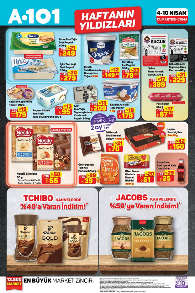 A101’in 4-10 Nisan tarihleri arasında geçerli yeni aktüel kataloğu yayımlandı ve bu hafta raflara gelen indirimler dikkat çekici seviyede. A101 4 Nisan 2026 kataloğu, Özellikle temel ihtiyaç ürünlerinde yapılan agresif fiyat düşüşleri, alışveriş planı yapan tüketiciler için önemli fırsatlar sunuyor. Tuvalet kağıdından kahveye, süt ürünlerinden temizlik ürünlerine kadar geniş bir ürün yelpazesi indirimli fiyatlarla satışta.