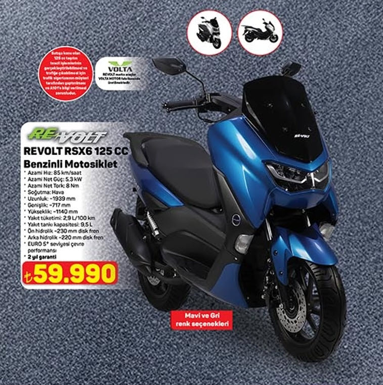Mavi ve gri renk seçenekleriyle sunulan Revolt RSX6, 59.990 TL satış fiyatına sahip.