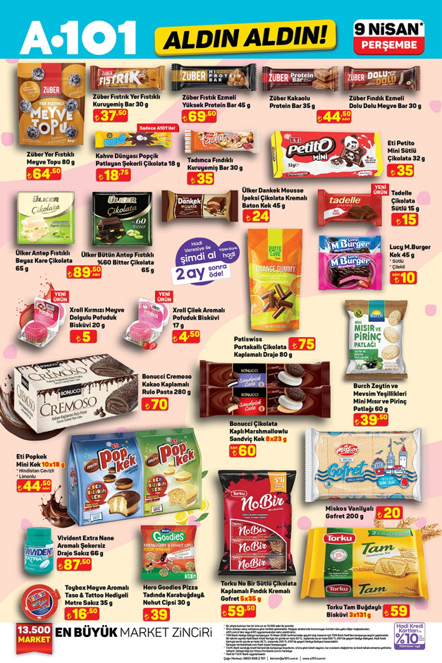 Katalogda uygun fiyatlı atıştırmalıklar da bulunuyor.