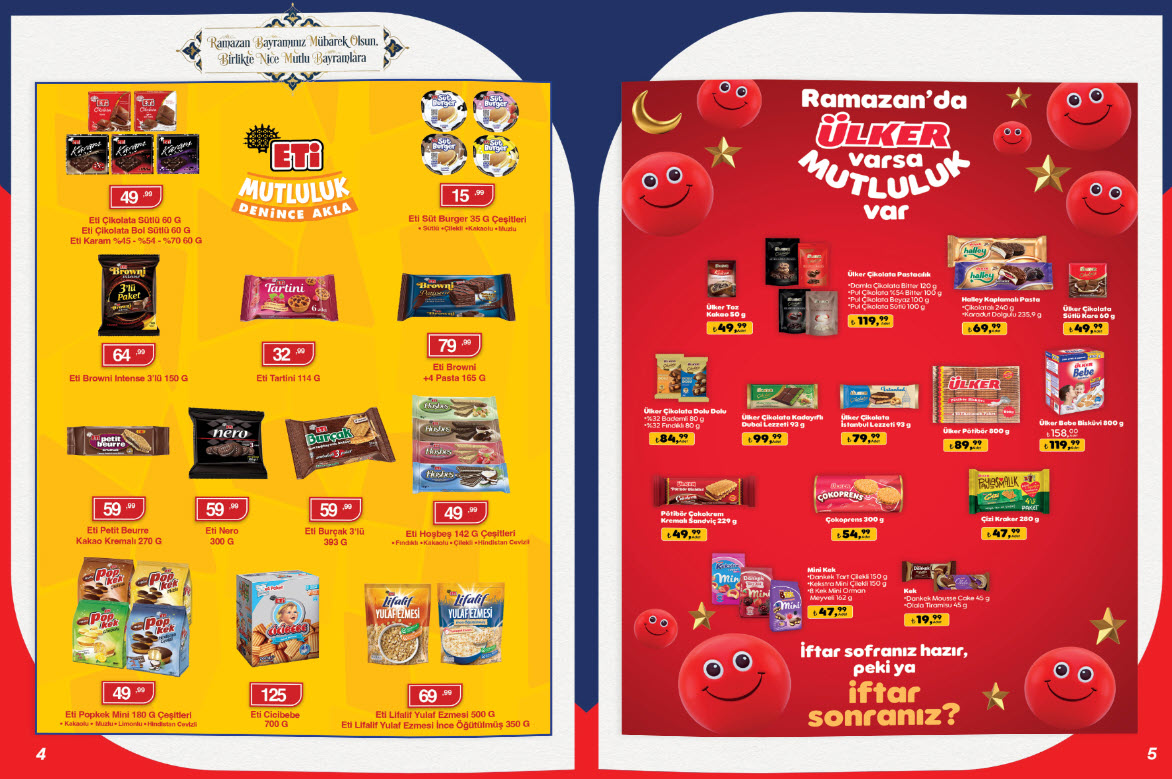 Çocukların favorisi olan Ülker Laviva ve mini atıştırmalık paketlerinde de büyük avantajlar var. Ayrıca bayram sofralarının tacı olacak Seyidoğlu cevizli tepsi baklava (1360 gr), uygun fiyatıyla tatlı telaşınıza son veriyor.
