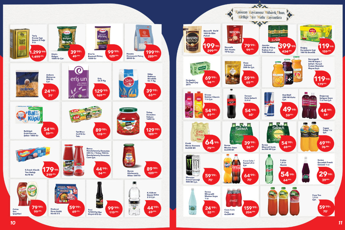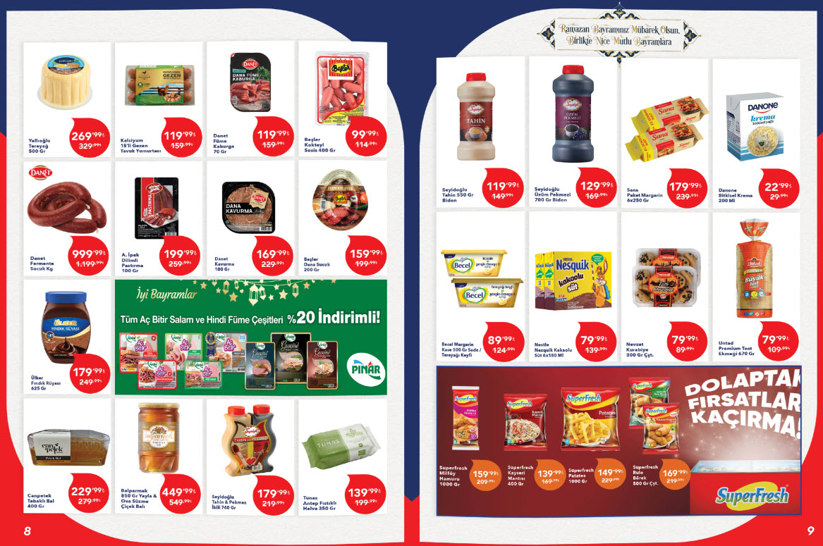 Kahvaltı sofraları için İçim 3 kg yoğurt 149,99 TL, Kınalı Klasik beyaz peynir kg fiyatı ise 349,99 TL olarak belirlenmiş. Ayrıca bayram sabahlarının olmazsa olmazı Mehmet Efendi Türk Kahvesi 79,99 TL fiyatıyla kahve severleri bekliyor.
