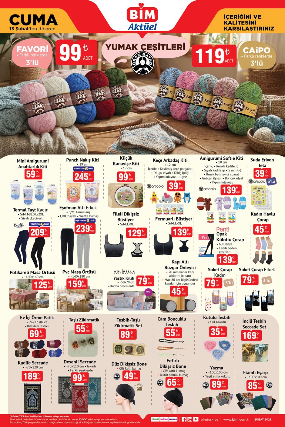 BİM Aktüel Ürünler Kataloğu’nda yer alan tüm ürünler 13 Şubat 2026 Cuma günü itibarıyla BİM mağazalarında satışa sunulacak. Ürünler stoklarla sınırlı olup, mağazaya göre değişiklik gösterebilir.