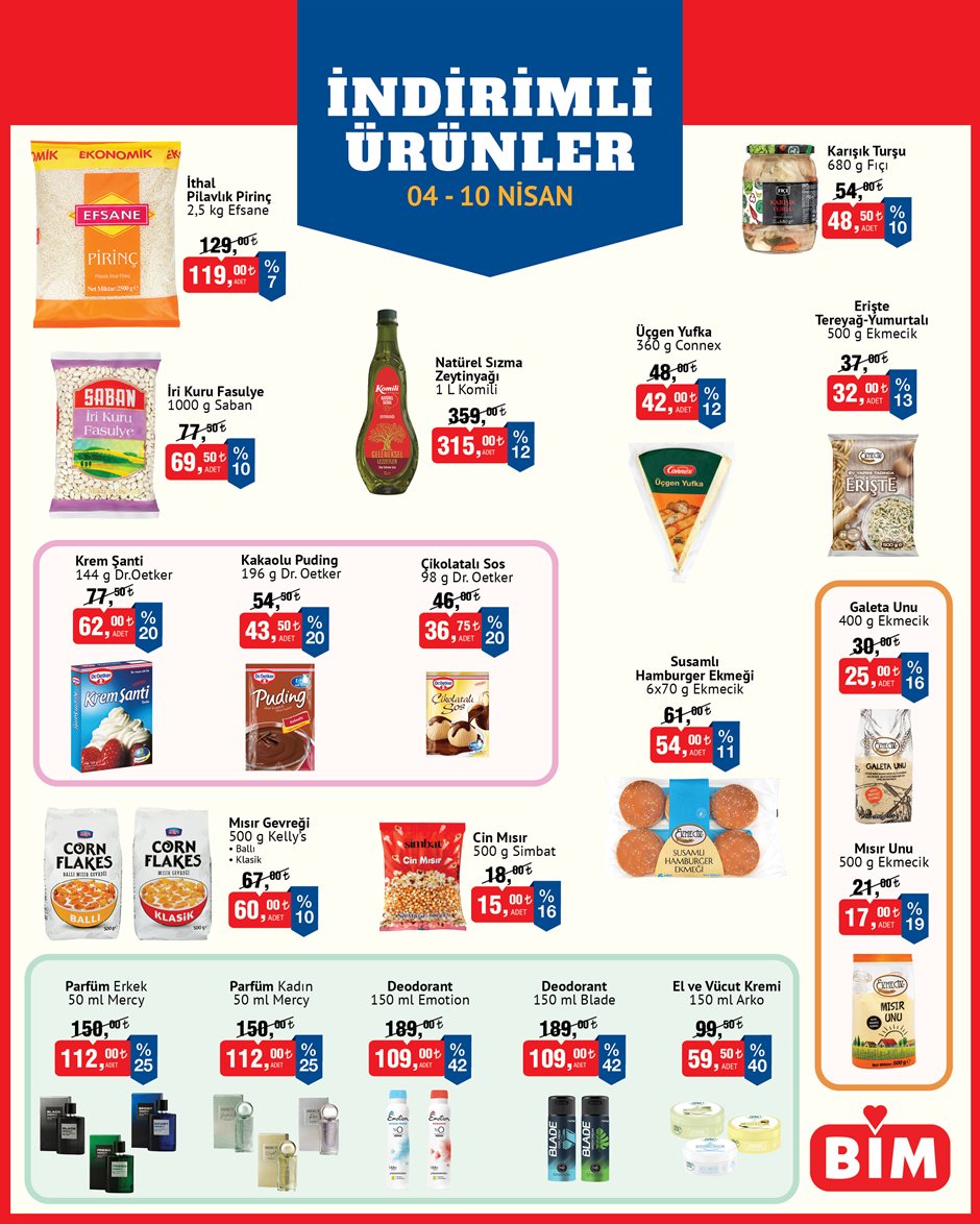 Bim 4 Nisan 2026 kataloğunda hem temel gıda hem de atıştırmalık ürün grubunda ciddi fiyat avantajları dikkat çekiyor. Ayrıca kişisel bakım ve ev ürünleri de kampanya kapsamında yer alıyor. Bu nedenle haftalık alışveriş planı yapan tüketiciler için oldukça geniş bir ürün listesi sunulmuş durumda.