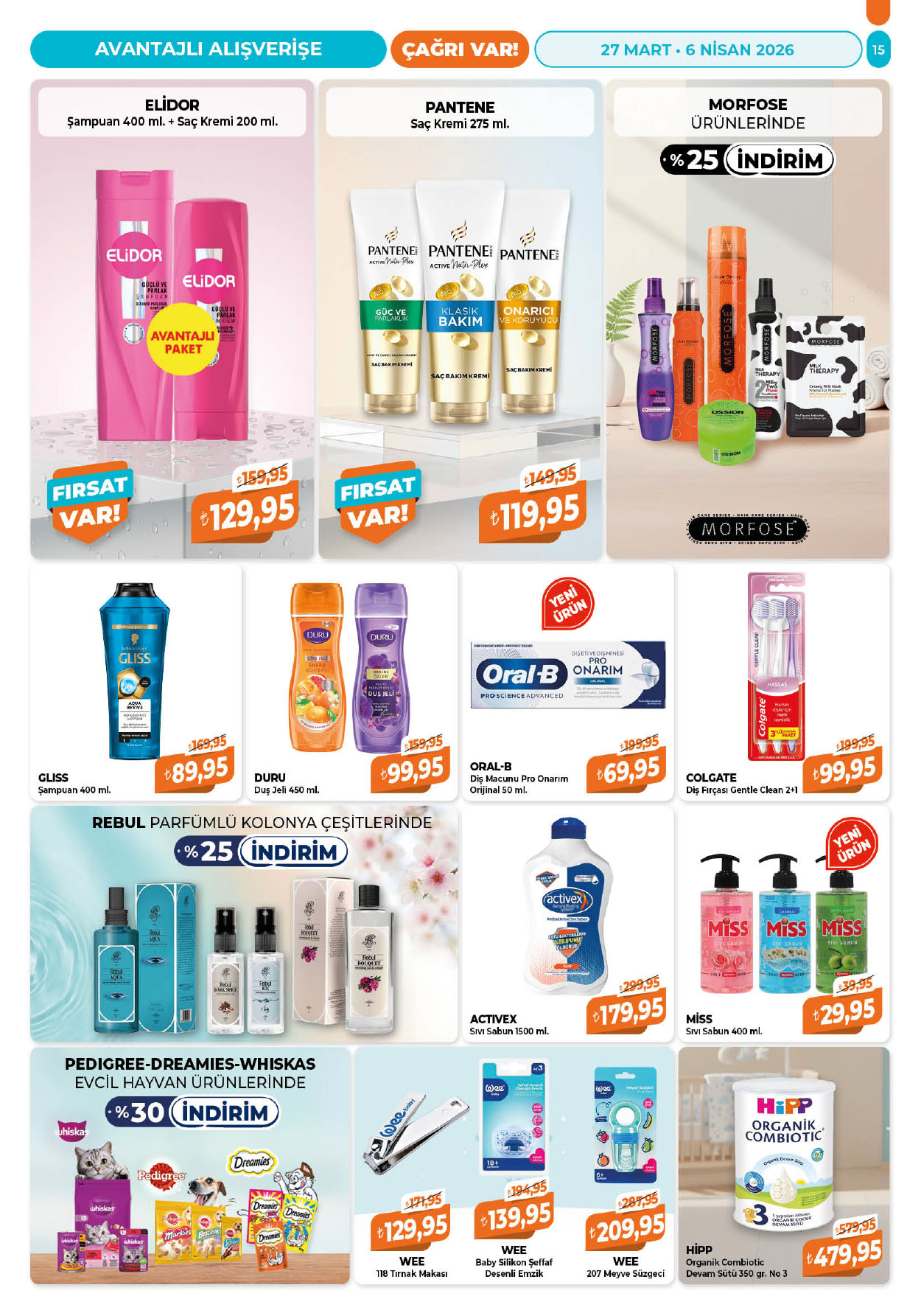 Banyo ihtiyaçlarında ise Sofia 32’li tuvalet kağıdı 249,95 TL ve Aqua 12’li kağıt havlu 149,95 TL gibi rekabetçi fiyatlarla sunuluyor. Kişisel bakım tarafında ise Elidor ve Pantene şampuan setlerinde “Avantajlı Paket” seçenekleri stoklarla sınırlı. Kendine bakmayı sevenler için bu fırsatlar kaçmaz.