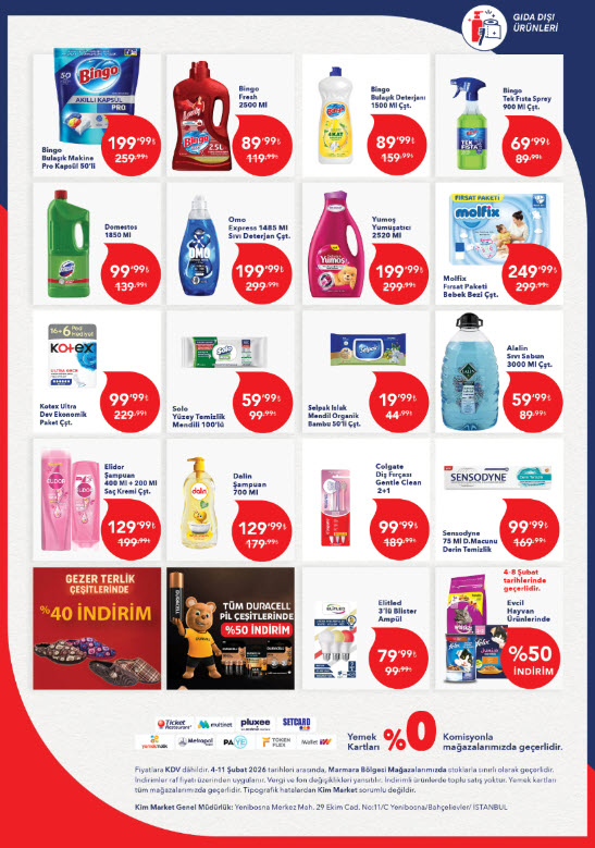 Kim 4 Şubat 2026 kataloğu Son görselde ev hijyenine ve kişisel bakıma yönelik ürünler bulunuyor: