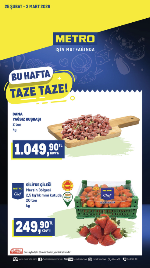 Metro Market 25 Şubat 2026 Bu sayfada hem et hem de meyve kategorisinde iki güçlü ürün yer alıyor.