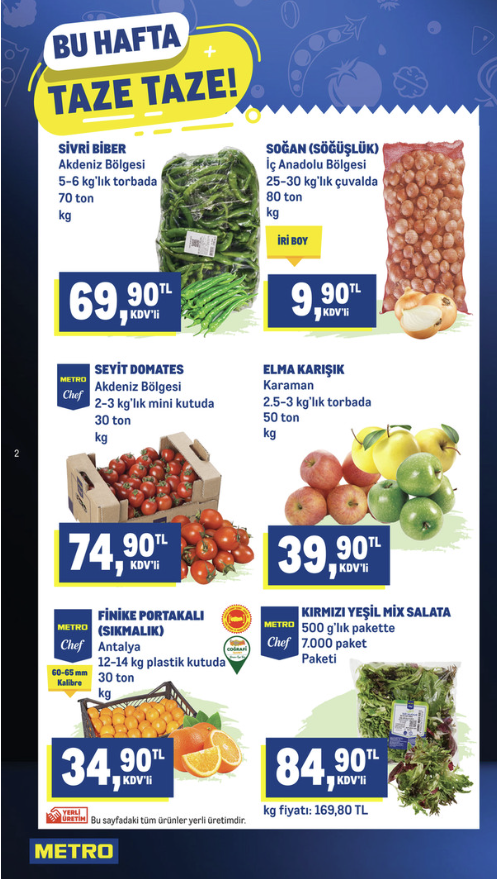Metro Market 25 Şubat 2026 Sebze ve meyve çeşitliliğinin yer aldığı bu sayfa, özellikle manav reyonu için zengin içerik sunuyor: