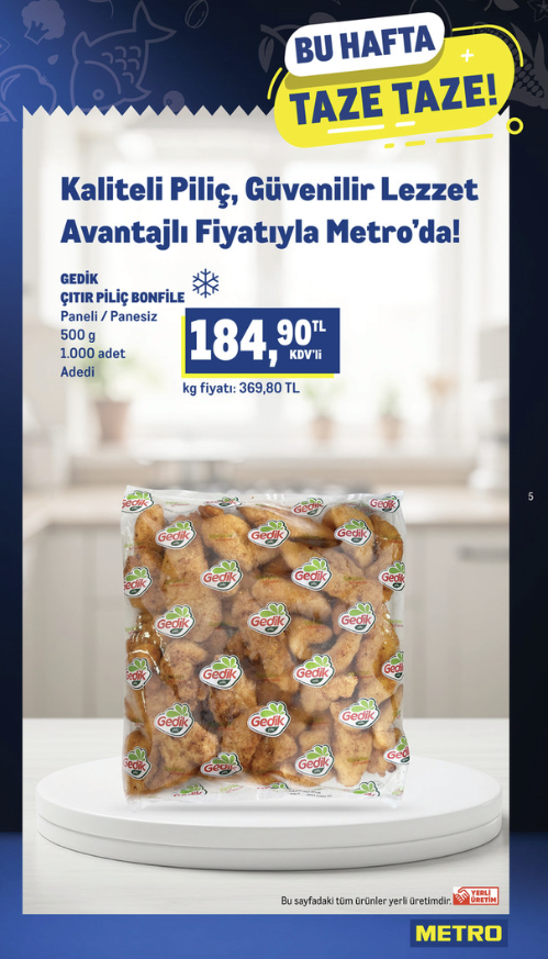 Hazır ve pratik ürün arayanlar için bu sayfanın yıldızı Gedik Çıtır Piliç Bonfile oluyor.