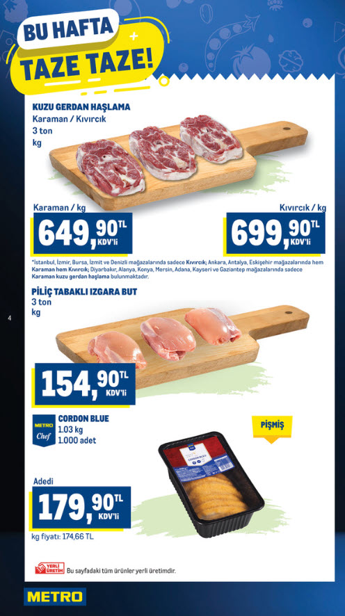 Metro Market 4 Şubat 2026 kataloğunda et ve manav reyonlarında bu hafta dikkat çeken ürünler: