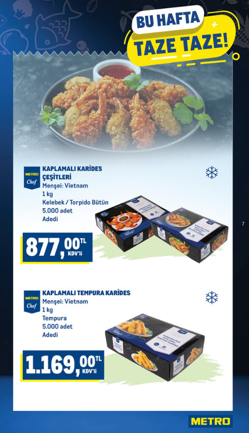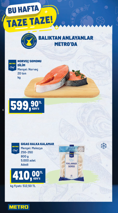 Metro Market 4 Şubat 2026 kataloğunun Bu bölümde deniz ürünlerinde öne çıkan fiyatlar yer alıyor: