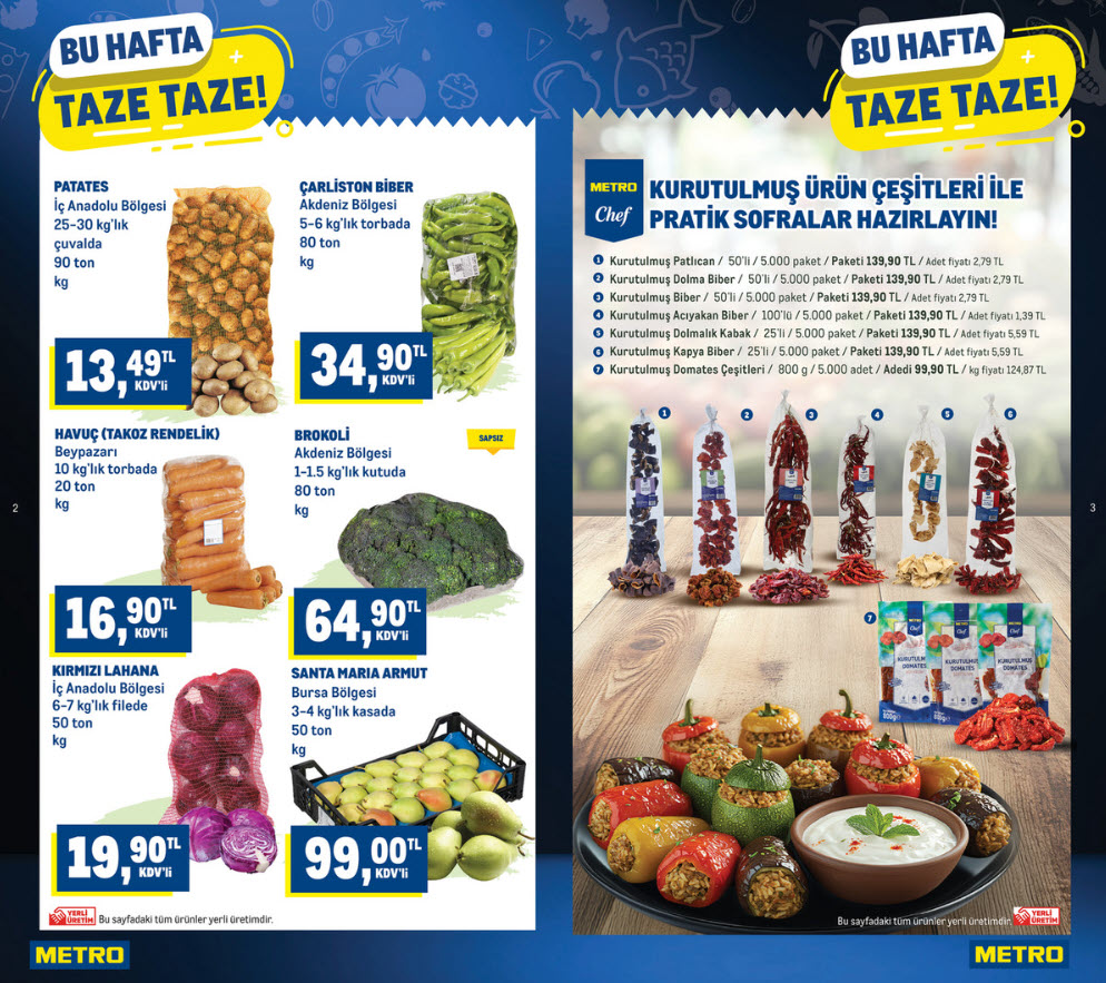 Metro Türkiye 7 Ocak 2026 Kataloğun ilk sayfalarında bizi Anadolu’nun bereketli topraklarından gelen taze mahsuller karşılıyor. Özellikle dökme ve çuval alımlarda sunulan avantajlı fiyatlar dikkat çekiyor.