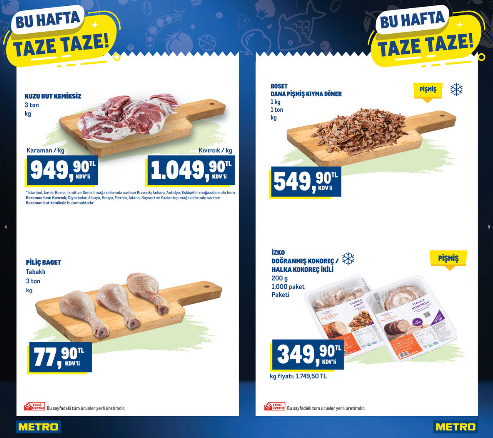 Metro Türkiye 7 Ocak 2026 kataloğundaki, et reyonunda “Yerli Üretim” logosuyla güven aşılıyor. Kırmızı et fiyatlarındaki stabilite ve kalite standartları profesyonel aşçıların öncelikli tercihi olmaya devam ediyor.