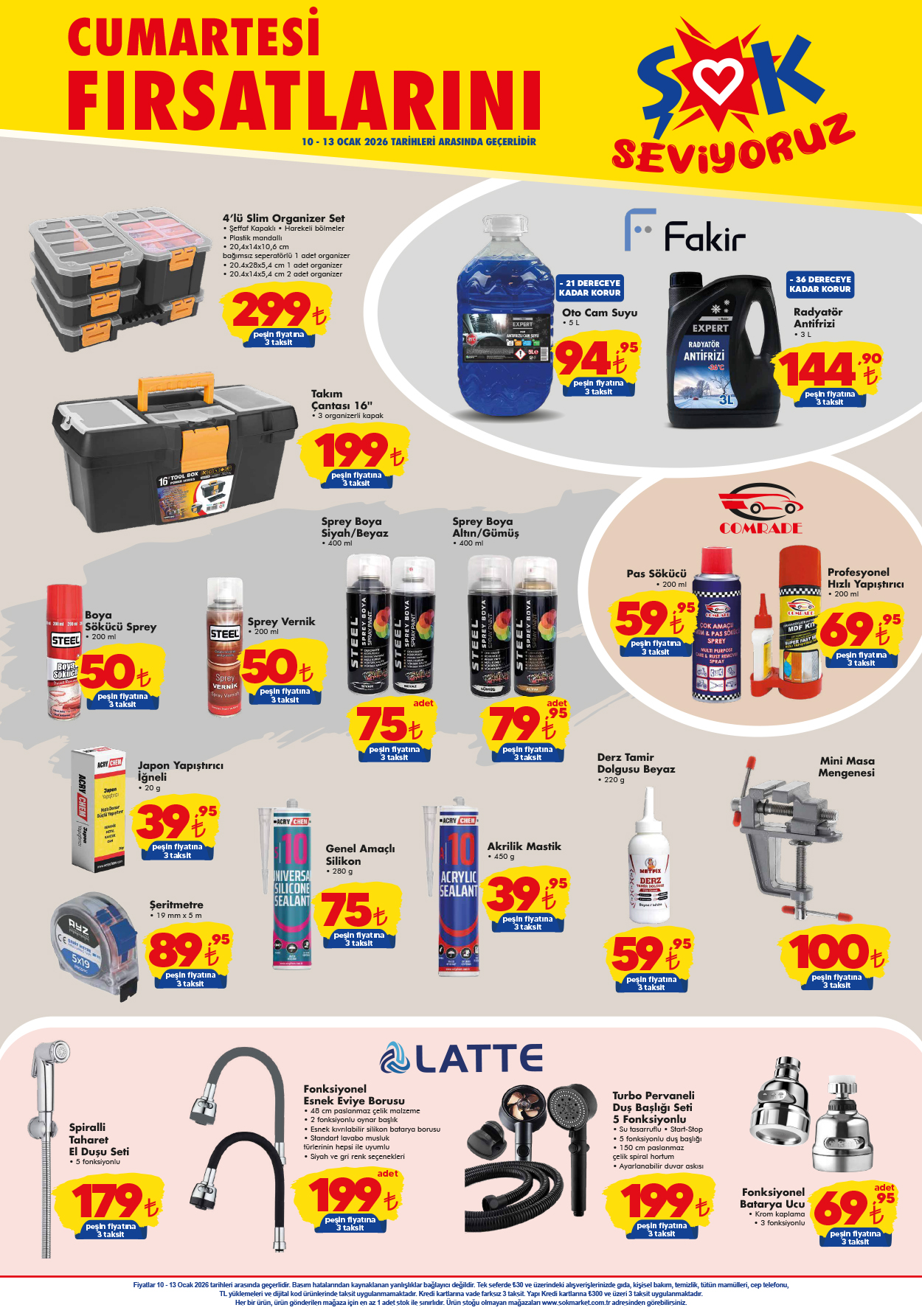 Şok 10 Ocak 2026 Hafta sonu fırsatları kapsamında araç sahipleri ve küçük tamirat işleri olanlar için de zengin seçenekler mevcut.
