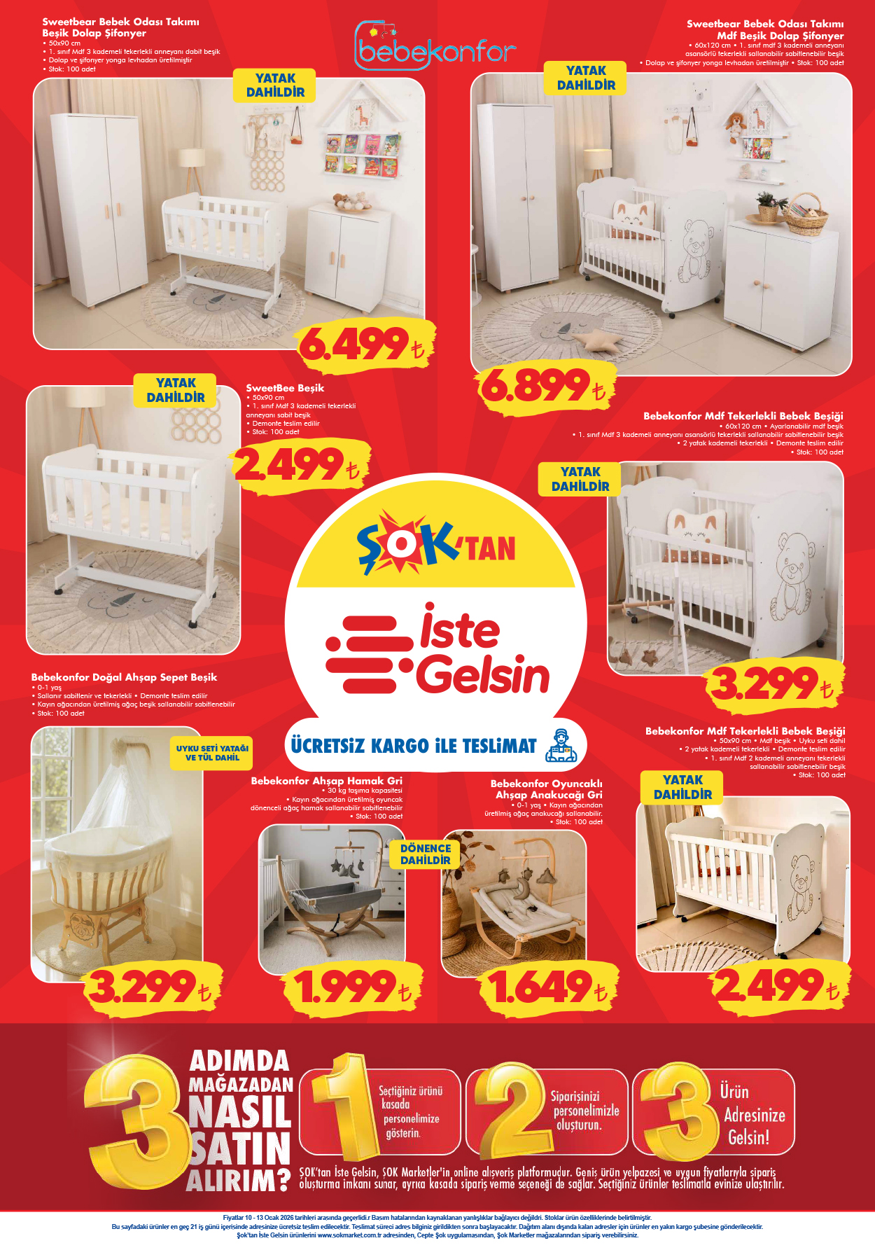 Yeni anne ve babalar için hazırlanan son sayfa, “Şok’tan İste Gelsin” özel teslimatıyla mobilya kategorisinde büyük kolaylık sağlıyor. Şık ve fonksiyonel tasarımlar bütçe dostu fiyatlarla birleşiyor.