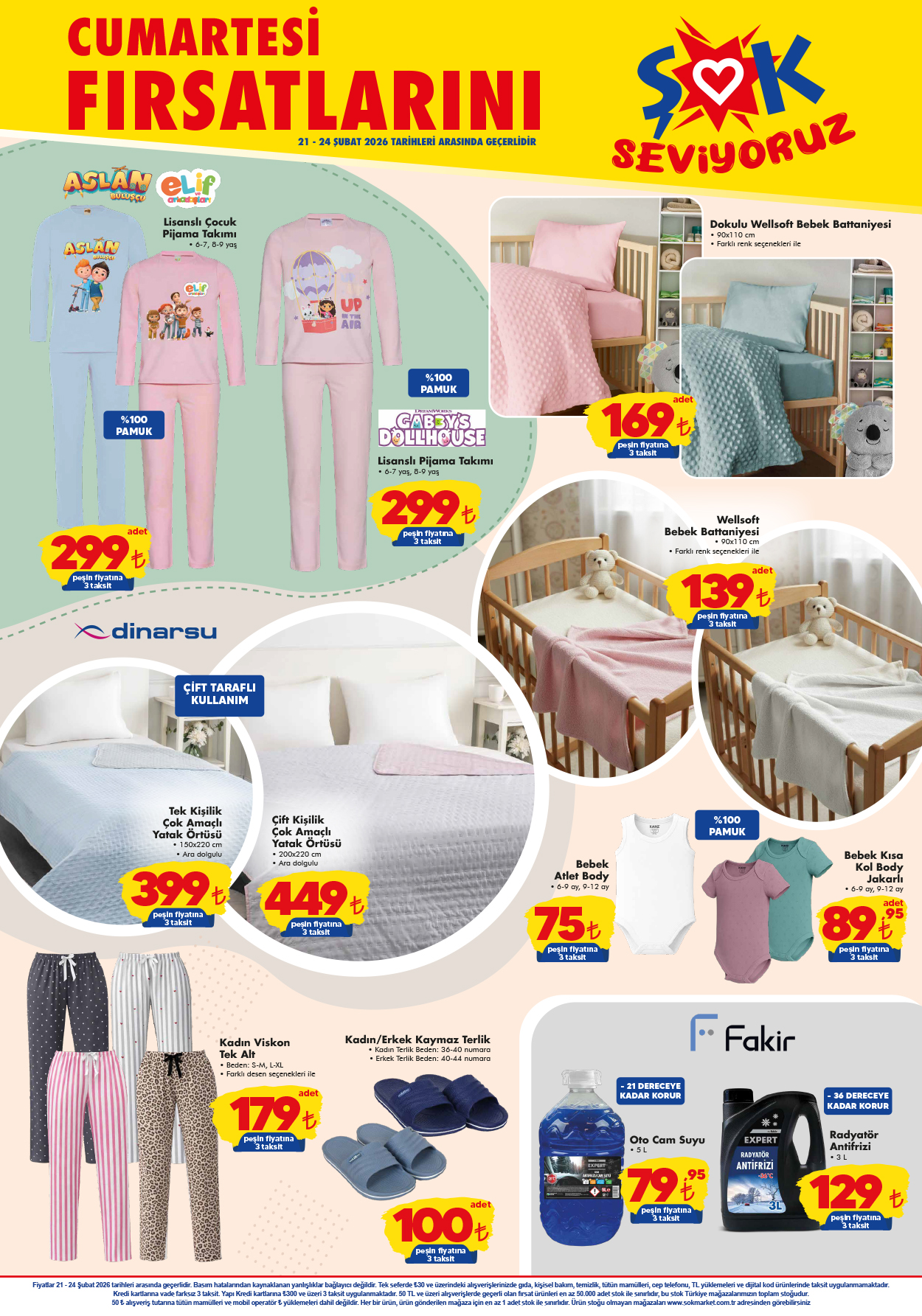 Şok 21 Şubat 2026 Bu katalog sayfasında tekstil ve temel ihtiyaç ürünleri öne çıkıyor.