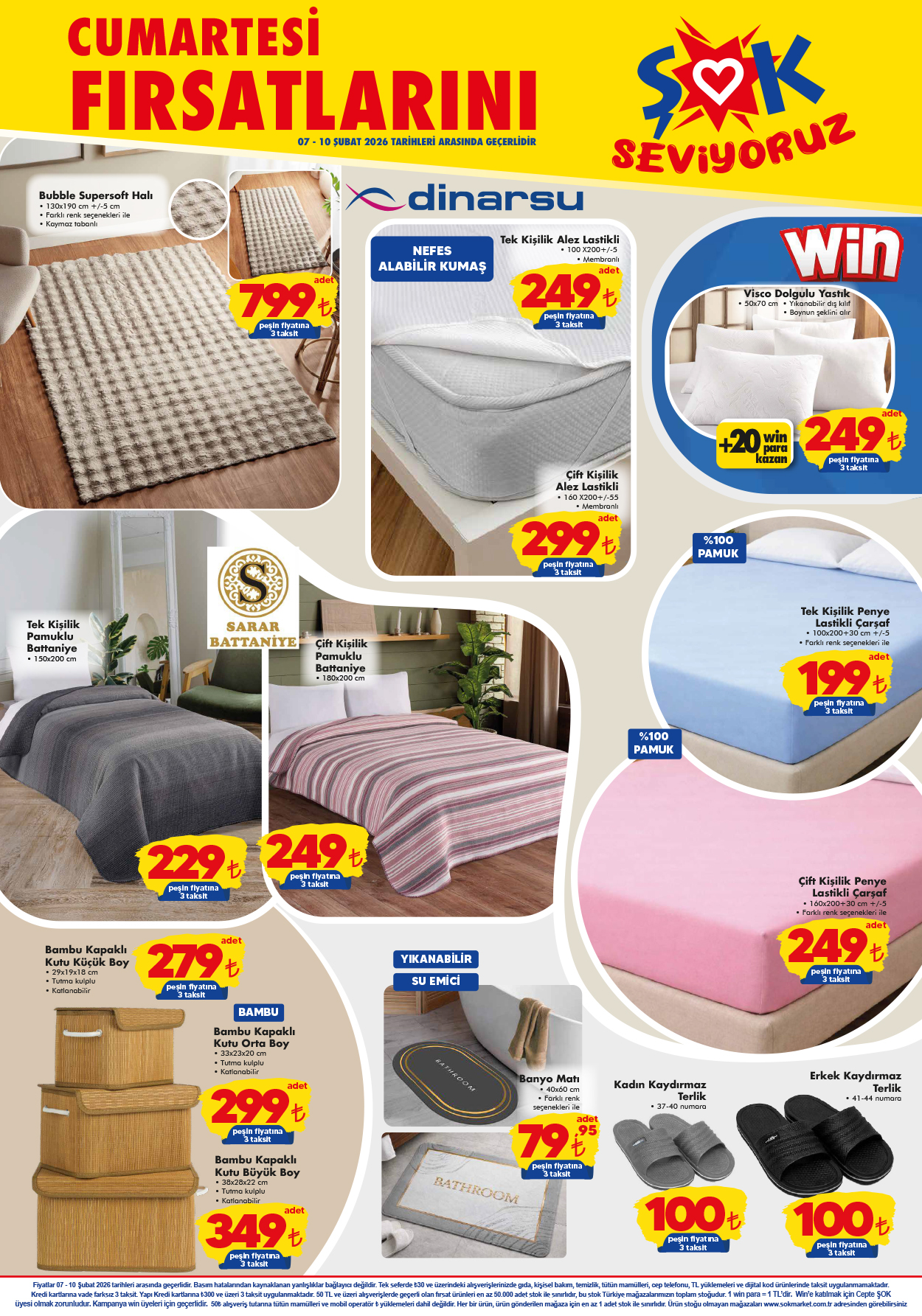 ŞOK 7 Şubat 2026 Kataloğun ikinci bölümünde ev tekstili ve yaşam alanı ürünleri öne çıkıyor. ŞOK, özellikle kış sezonuna uygun tekstil ürünlerinde dikkat çeken fiyatlar sunuyor.