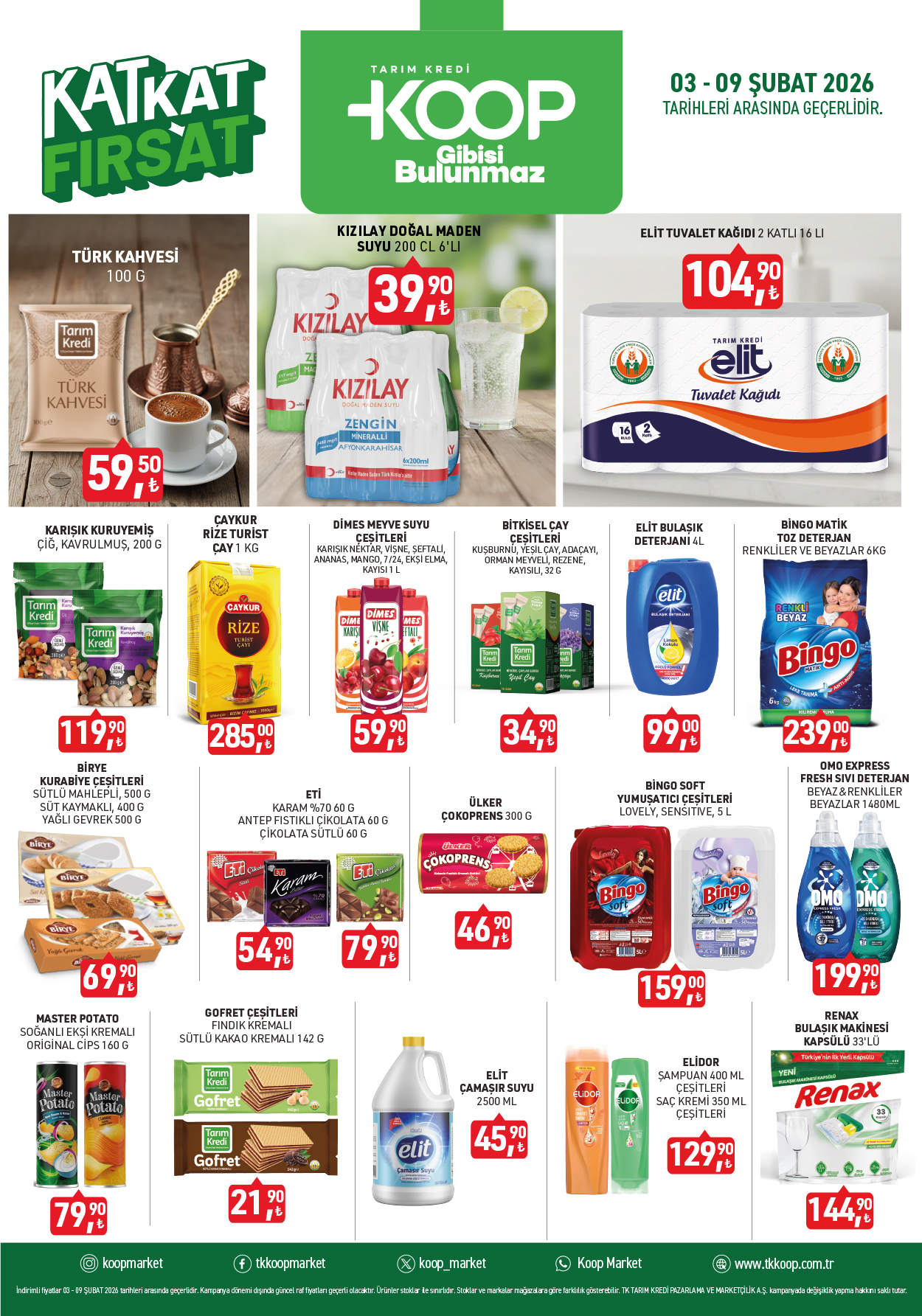 3 Şubat 2026 Salı günü başlayan kampanya, stoklarla sınırlı olmak üzere belirlenen süre boyunca Tarım Kredi Kooperatif Marketleri’nde geçerli olacak. Bölgesel farklılıklar ve mağaza stok durumuna göre ürün çeşitliliği değişiklik gösterebilir.